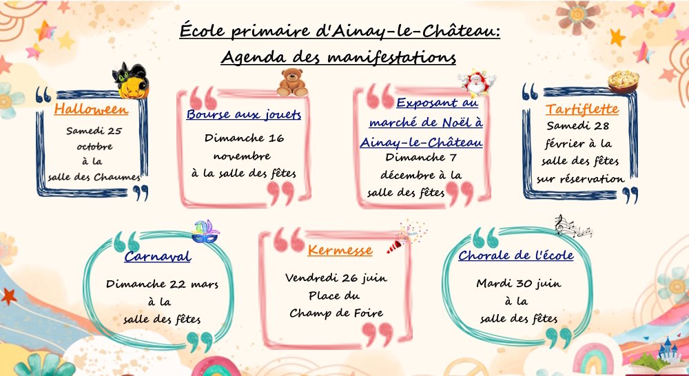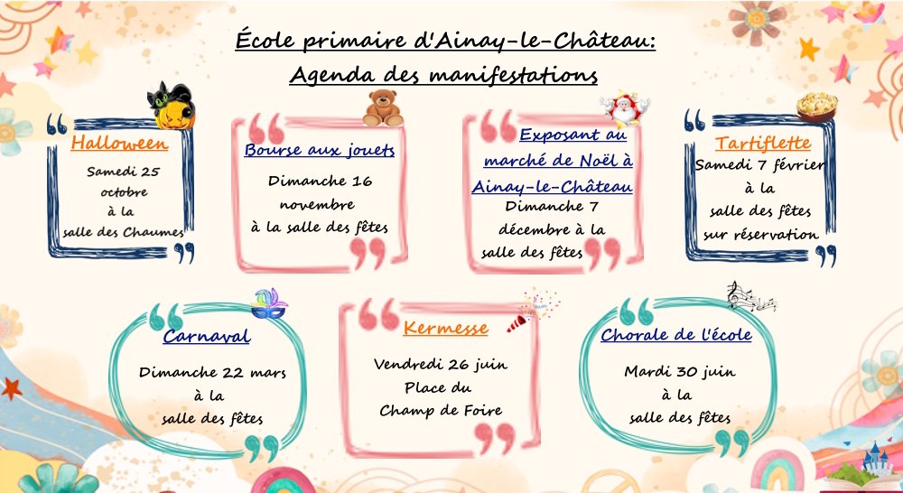 AGENDA DES MANIFESTATIONS DE L'ÉCOLE D'AINAY-LE-CHÂTEAU
