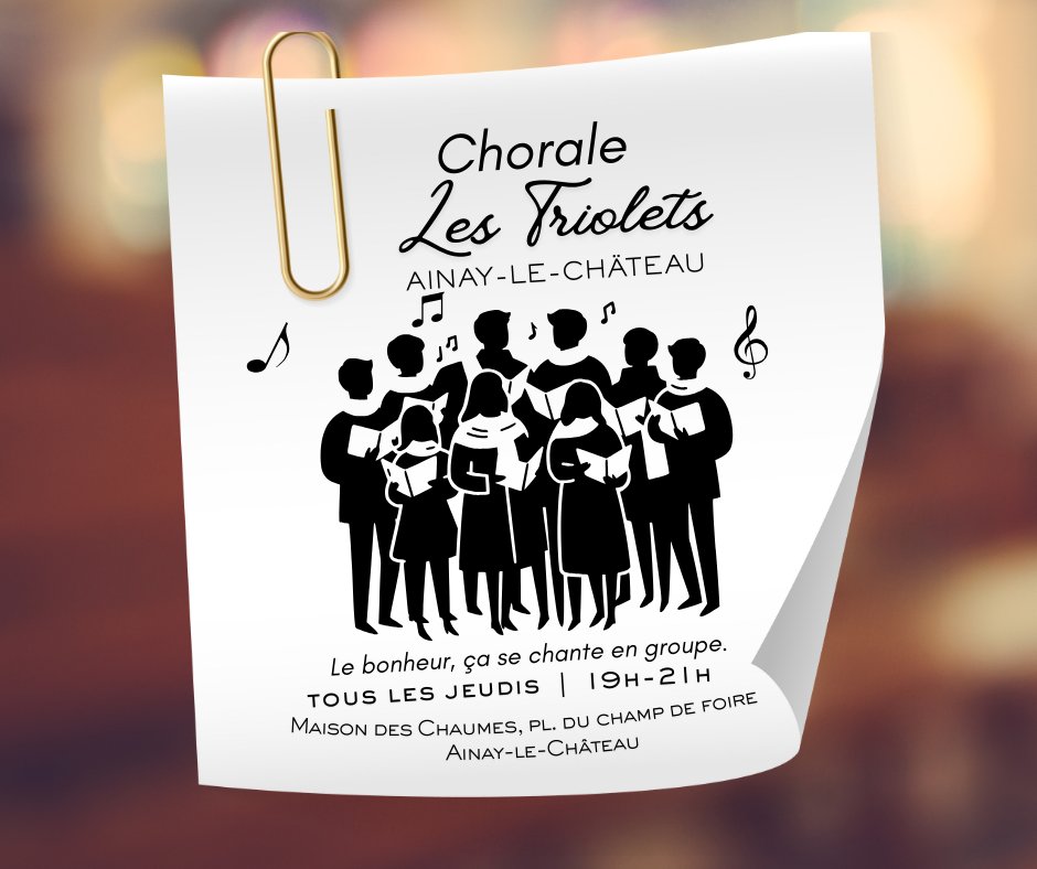 Il ne tient qu’à vous, 1000 et 2 habitants de la commune d'Ainay-le-Château, damoiselles et damoiseaux, de donner un peu de la voix avec les Triolets en colorant en harmonies les nuances de vos cordes vocales.