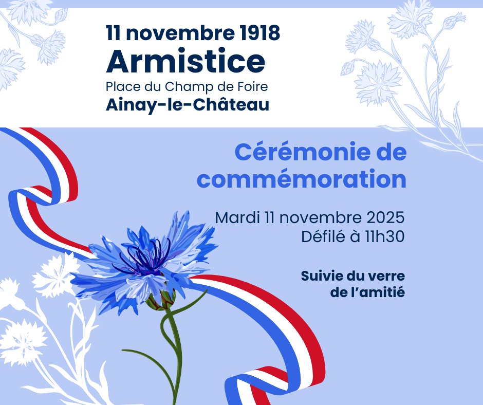 La Municipalité vous invite cordialement à la cérémonie de commémoration de l'Armistice du 11 Novembre. Un moment essentiel pour préserver et transmettre le souvenir et les valeurs républicaines de celles et ceux qui ont défendu notre Nation.