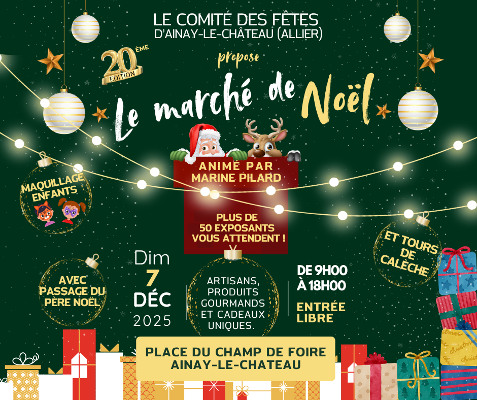 Le Comité des Fêtes d'Ainay-le-Château (Allier) est fier de vous présenter la 20ème édition de son Marché de Noël !