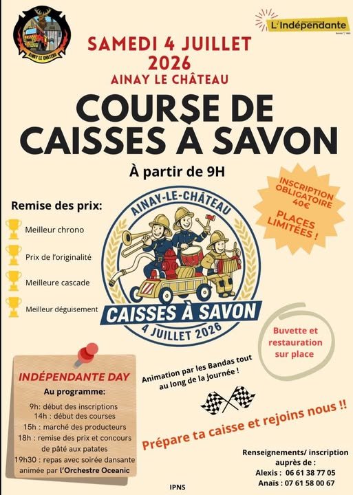 Le samedi 4 juillet 2026, préparez-vous pour une journée mémorable placée sous le signe de l'originalité et de la vitesse. Que vous soyez mordu de mécanique, as du volant ou simplement amateur de moments festifs, la fanfare L'Indépendante et les sapeurs-pompiers d'Ainay-le-Château vous réservent un programme exceptionnel.