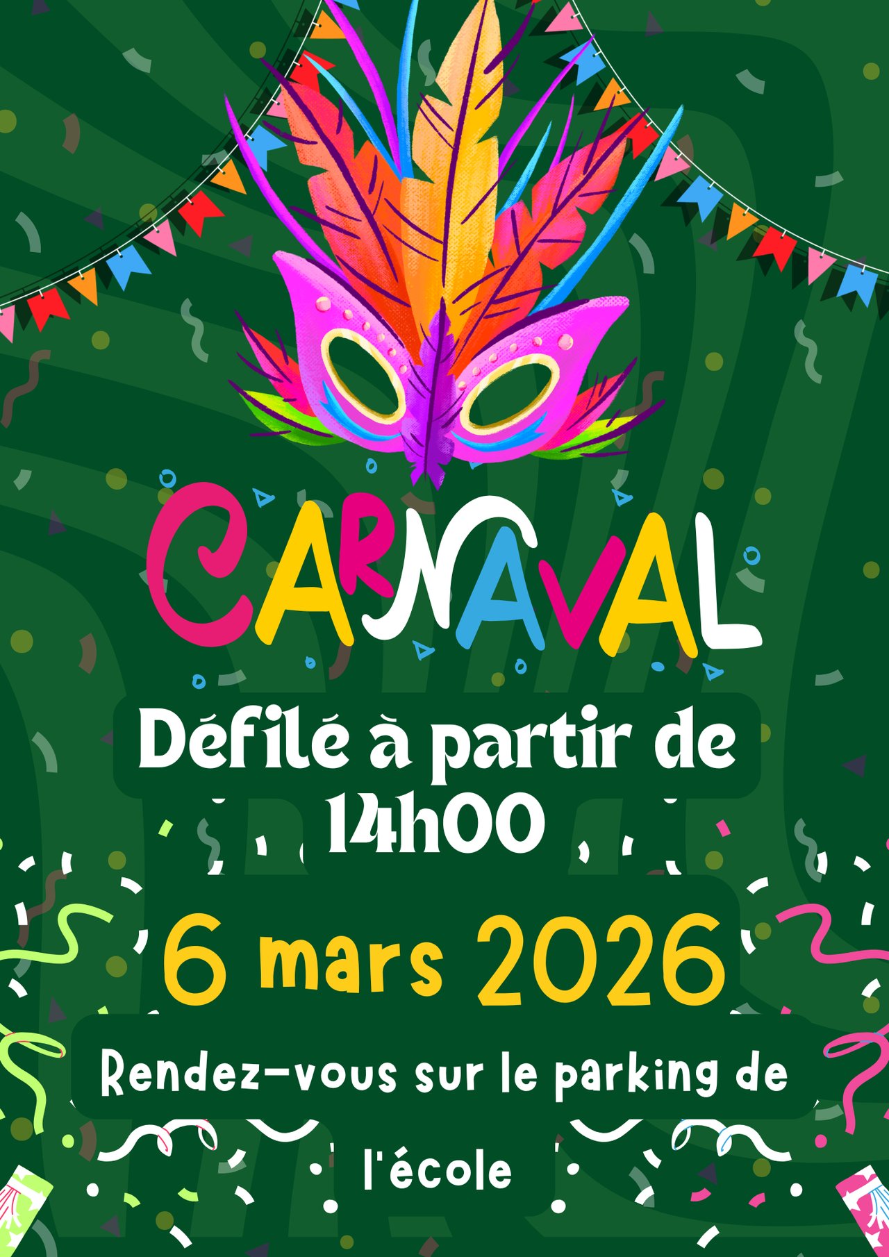 Défilé du Carnaval dans les rues d'Epineuil le Fleuriel avec les enfants de l'école.